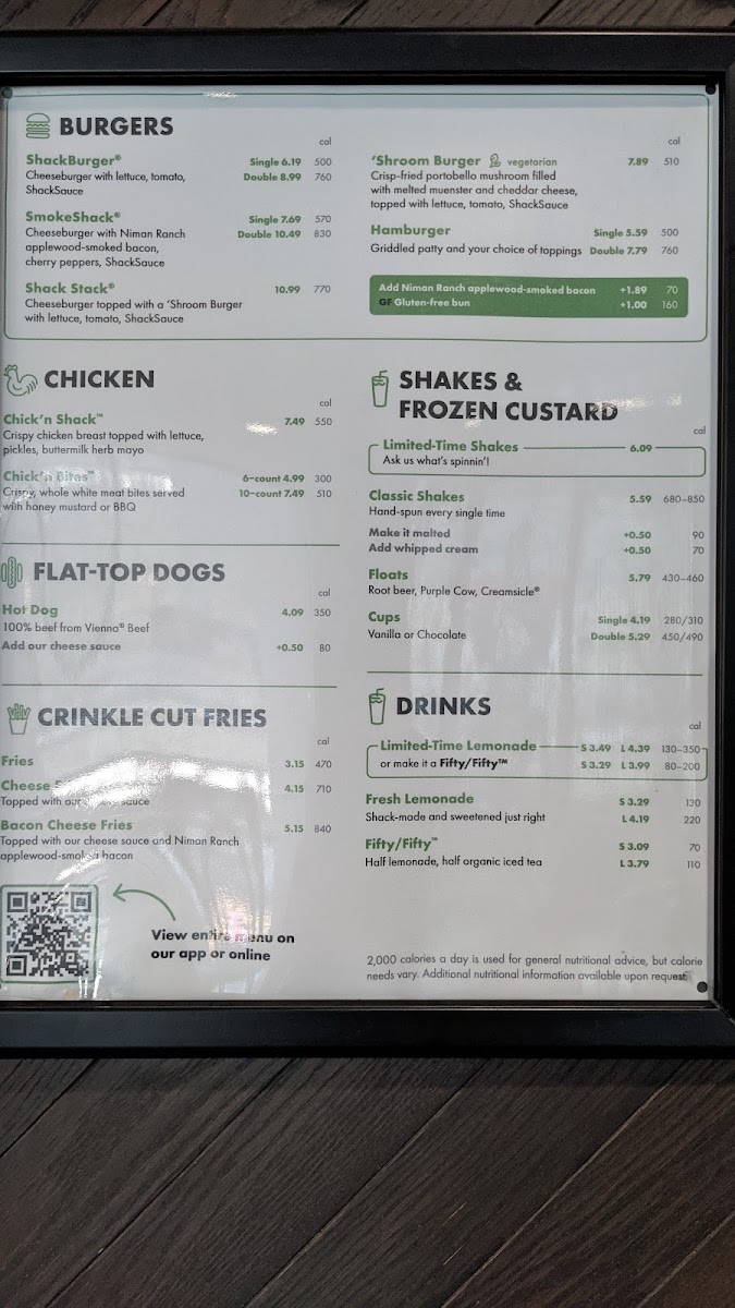 Shake Shack Fulton Transit CTR - Manhattan Menu