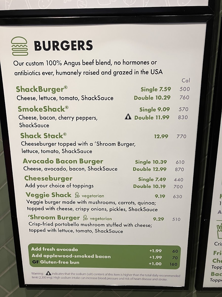 *Vegetarian* Crisp-fried portobello mushroom filled with melted muenster and cheddar cheeses, topped with lettuce, tomato, and ShackSauce on a toasted potato bun (contains sesame, milk, wheat, egg, soy, and gluten)