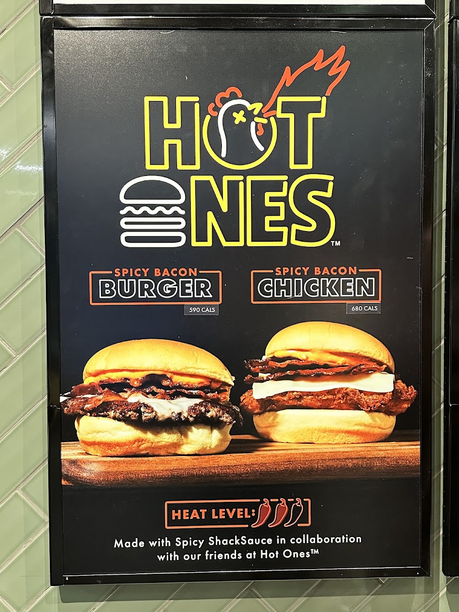 Angus beef cheeseburger with applewood-smoked bacon, chopped cherry peppers, and ShackSauce on a toasted potato bun (contains sesame, milk, wheat, egg, soy, and gluten)